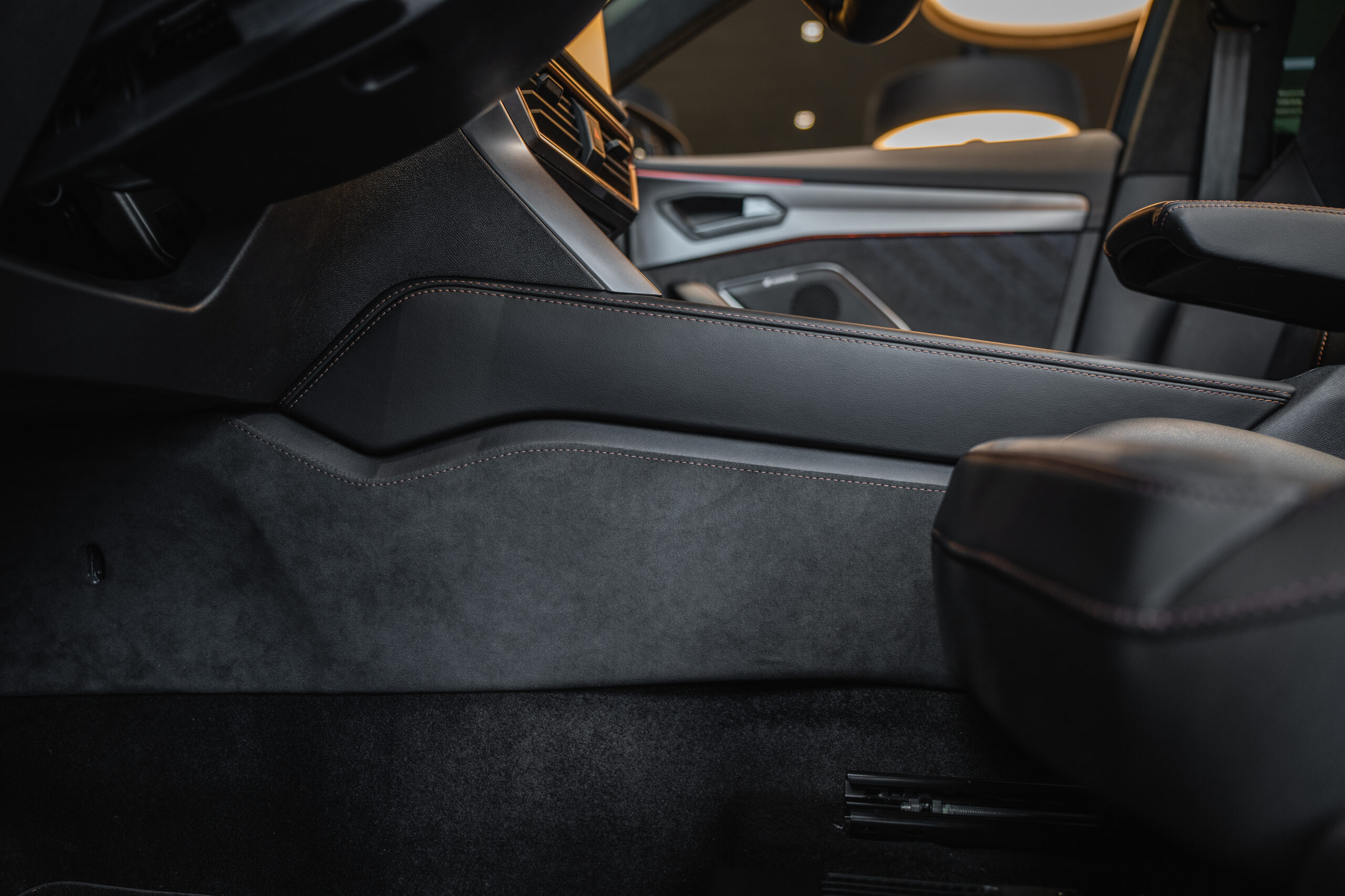 Elementy wykonujemy ręcznie przy użyciu starannie wyselekcjonowanych materiałów najwyższej jakości. Oferujemy produkt gotowy do montażu. Obszyte elementy z przeszyciami w kolorze miedzi zdecydowanie poprawiają wygląd wnętrza pojazdu dodając mu jeszcze więcej jakości oraz zapewniając uczucie luksusu.